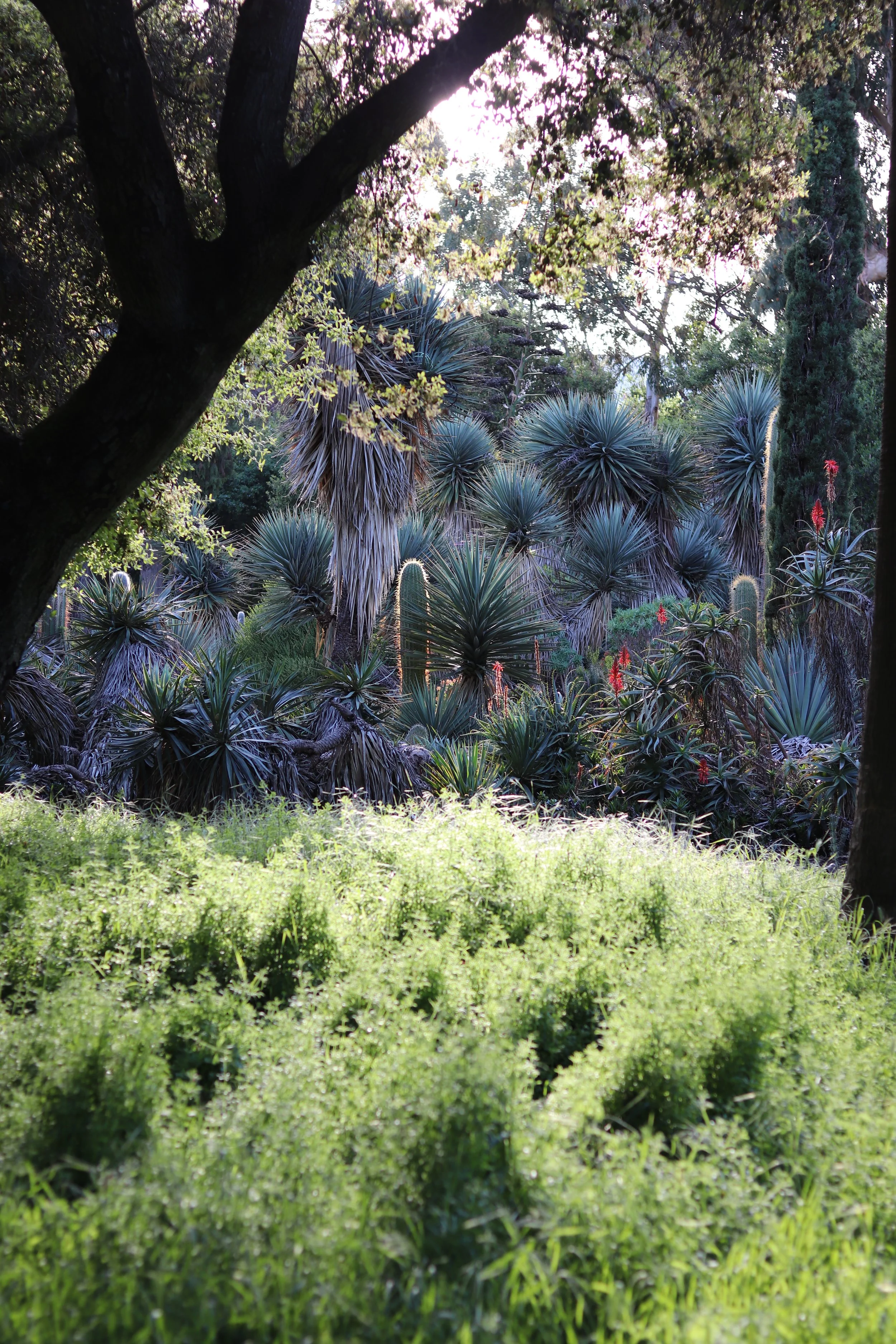 Tucked within a flourishing Northern California arboretum, this cactus garden is a retreat, dense with cacti, succulents and herbaceous plants. In the late afternoon, eucalyptus swag filters light into a dapple; palm fronds offer full shade.